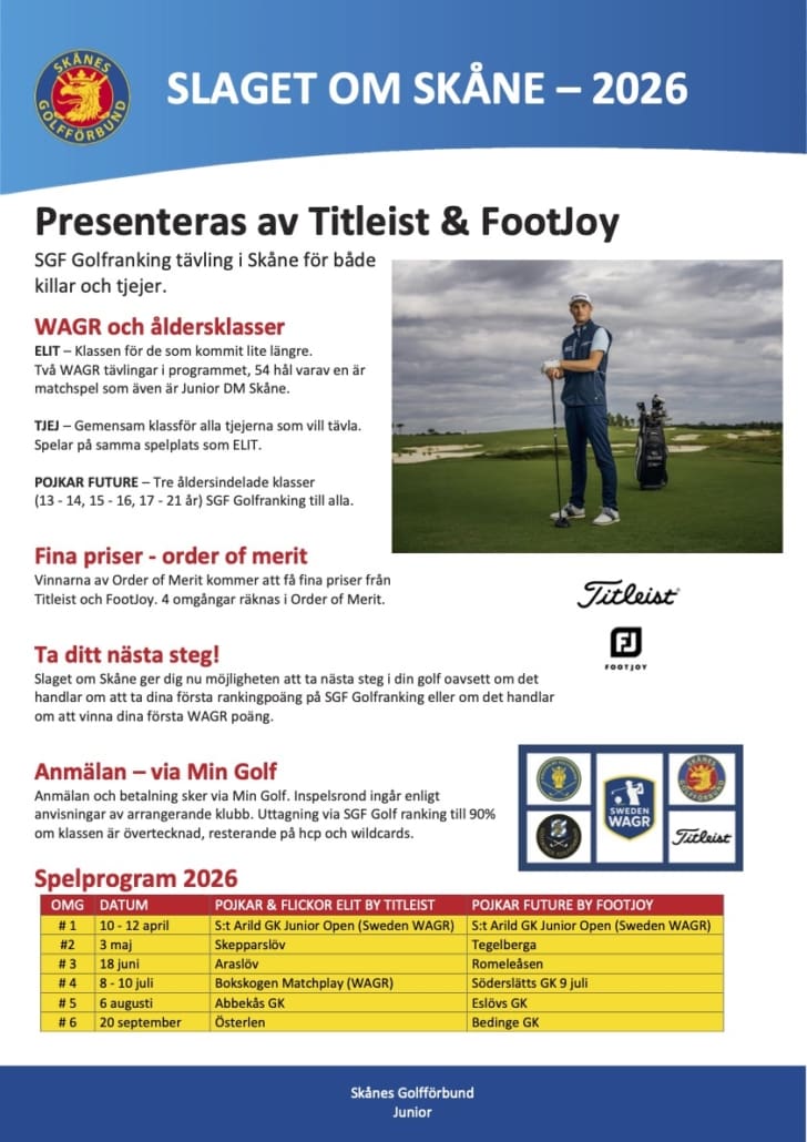 Slaget om Skåne ger dig nu möjligheten att ta nästa steg i din golf oavsett om det handlar om att ta dina första ranking poäng på SGF Golfranking eller om det handlar om att vinna dina första WAGR poäng.